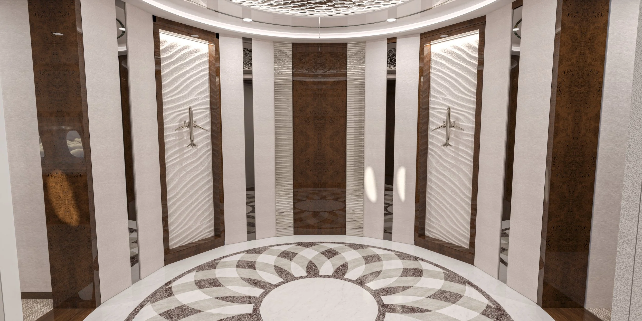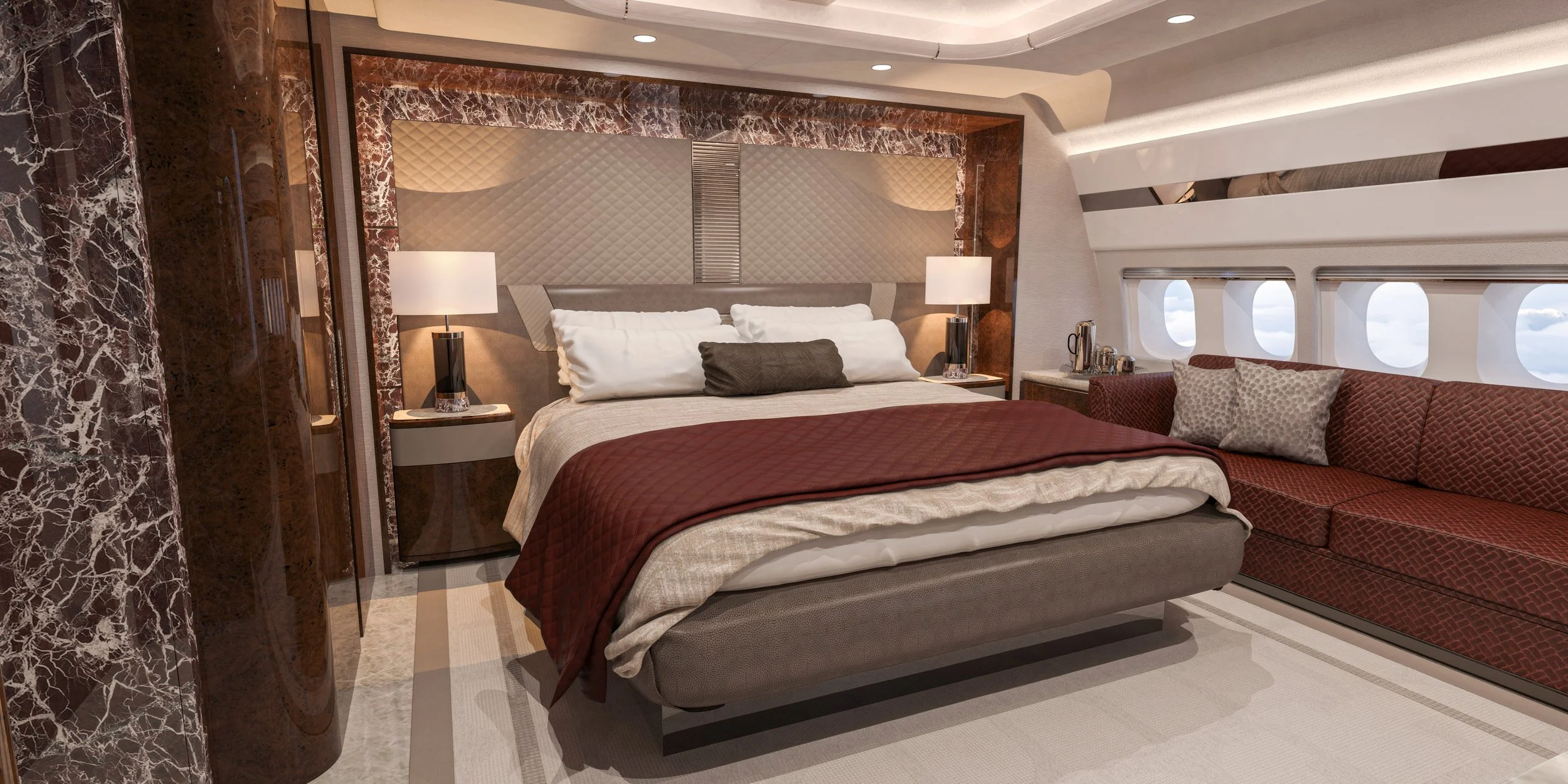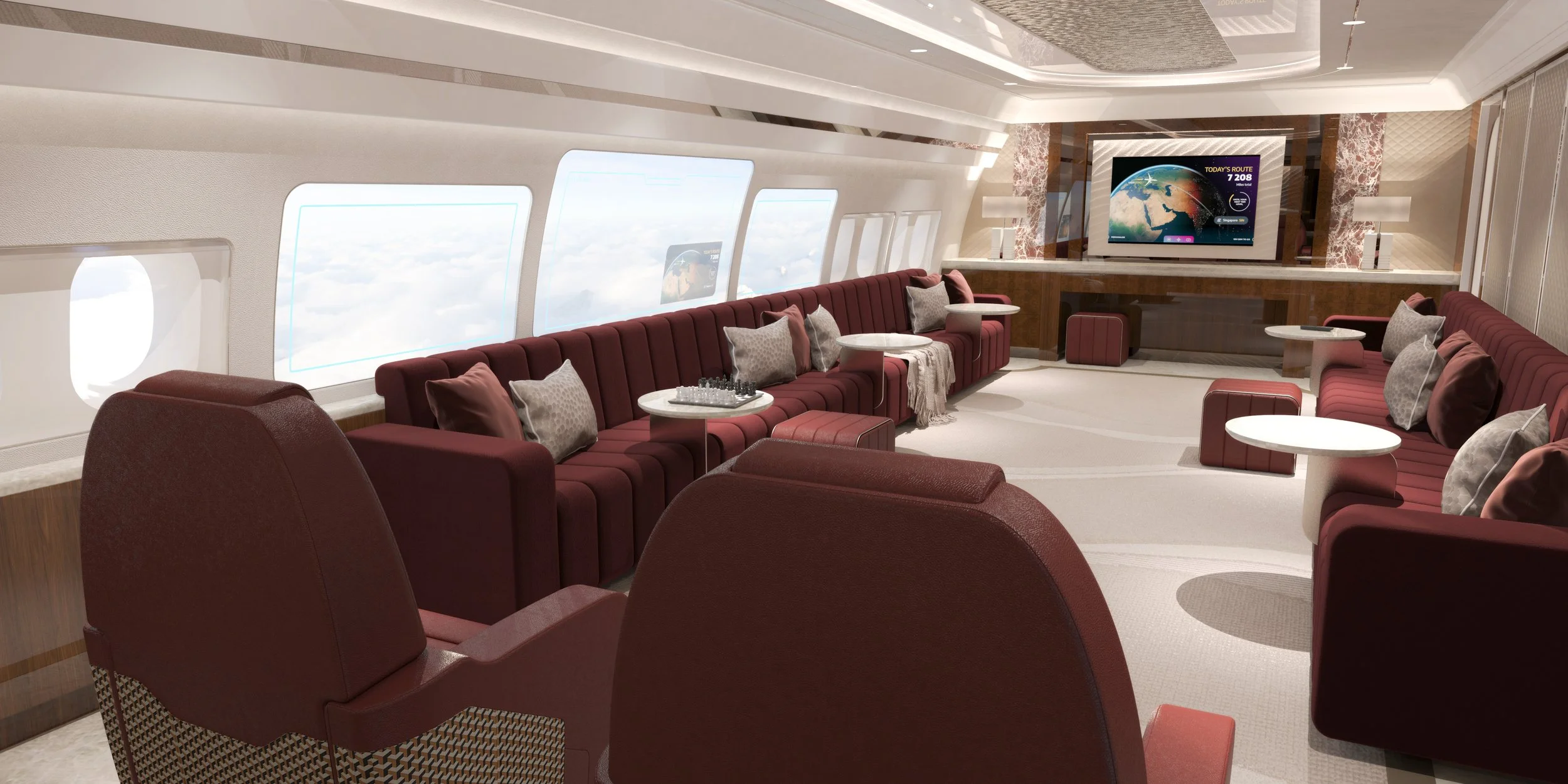 Full VIP 787 Concept interior featuring two lounges, a formal dining room, 2 state rooms and VIP Pods